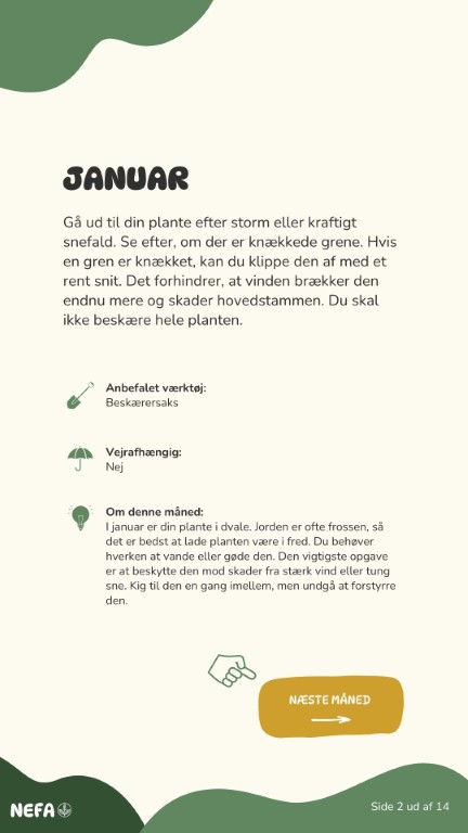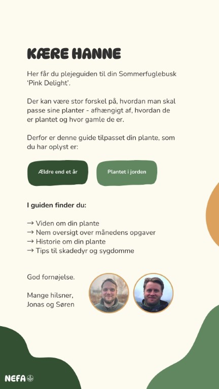 Få en gratis plejeguide, der er tilpasset netop din plante - baseret på dens alder og hvordan den er plantet.